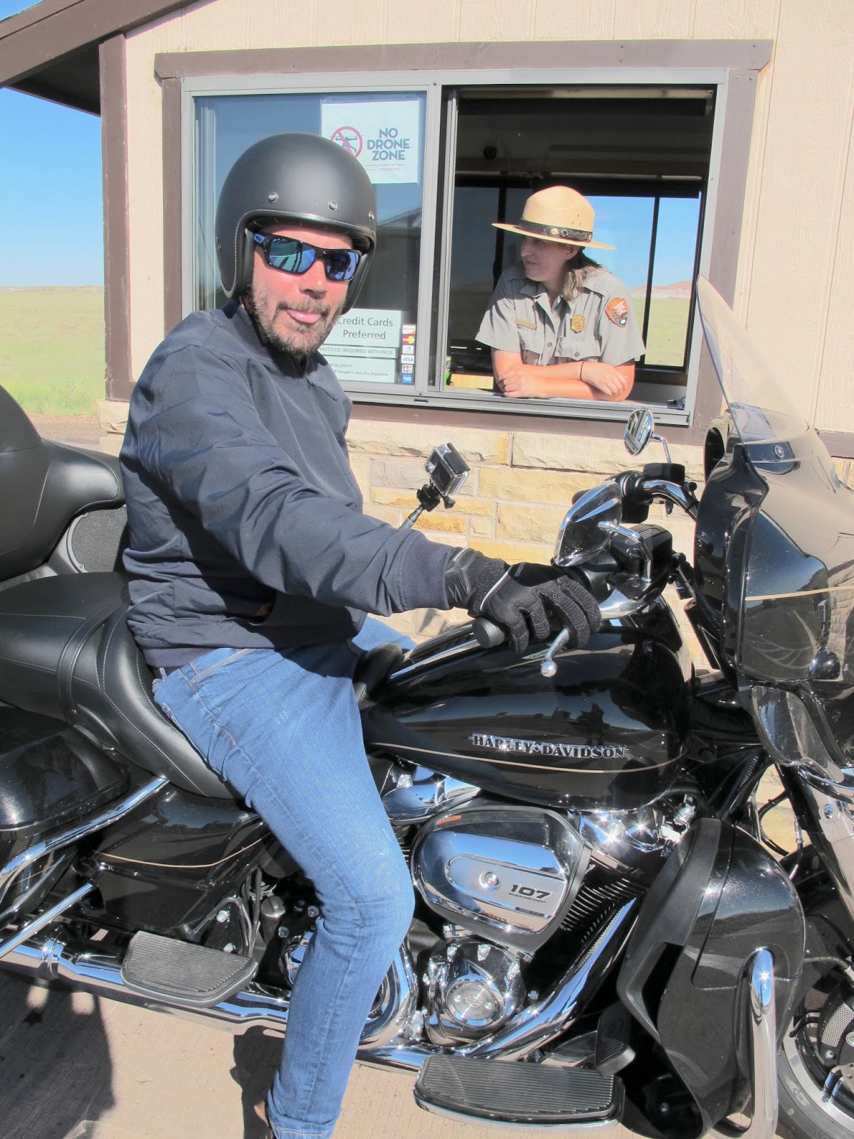 Nuestra entrada en el bosque petrificado, un precioso parque natural, con paisajes alucinantes. Qué todo un placer rodar por esa ruta, prácticamente sin tráfico, y ver los troncos de madera convertidos en rocas después de miles años.