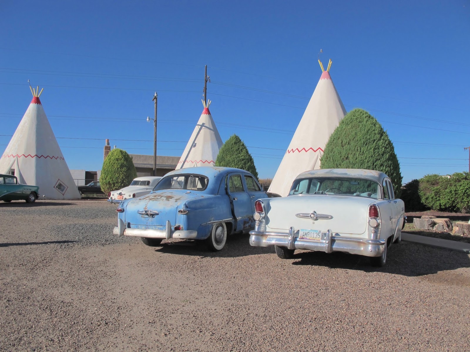 Vamos avanzando hasta Holbrook, este pueblo, aunque casi no se ha levantado de su decadencia, tiene sitios interesantes como el Wigwam Motel, una curiosidad con forma de hotel y rodeado de coches clásicos, muy genuino.