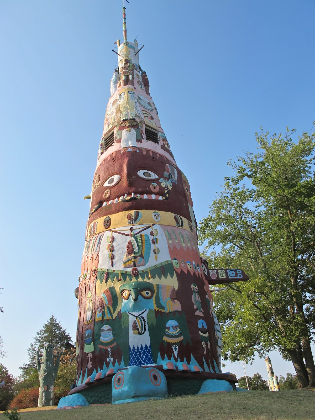 La siguiente parada, la hacemos en Foyil, para ver el Totem Pole. El Totem indio más grande del mundo, constuido en 1948 por la reserva de Cherookes. Además alrededor hay muchos más. Hacemos un poco el indio por allí y sacamos fotos, el humor es una de las características de este grupo…
