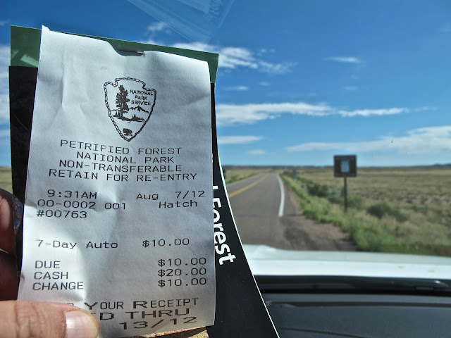 Hora de pagar la entrada del parque natural, esta guarda forestal de Petrified Forest no nos gusta tanto como la india de ayer, pero fué muy simpático y amable…