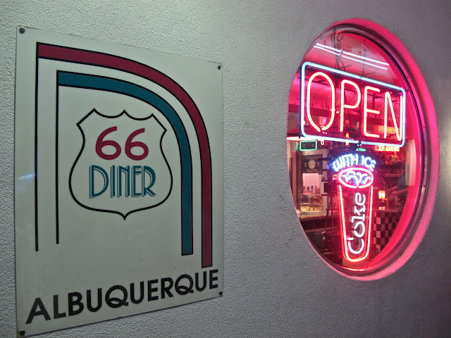 Conforme nos acercamos a Albuquerque, una tormenta acecha, pero eso no nos impide ir a cenar al 66 Diner de Albuquerque.
