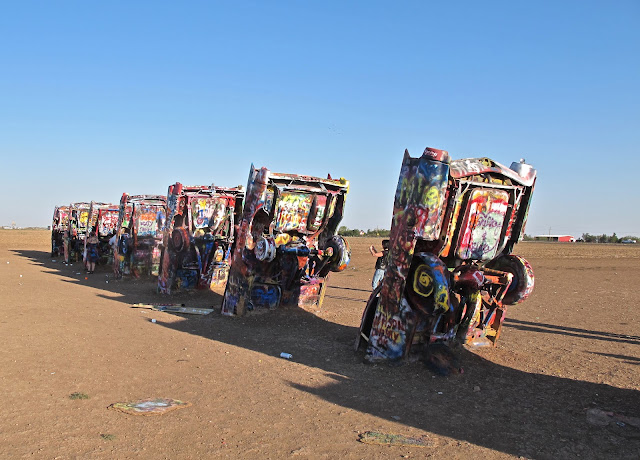 Amanece en Amarillo, Texas. Hace un día despejado y nuestro primer destino de hoy es el famoso Cadillac Ranch. Es una expresión artística de un millonario de 1974. Hoy es todo un icono de Pop Art y de la ruta 66…