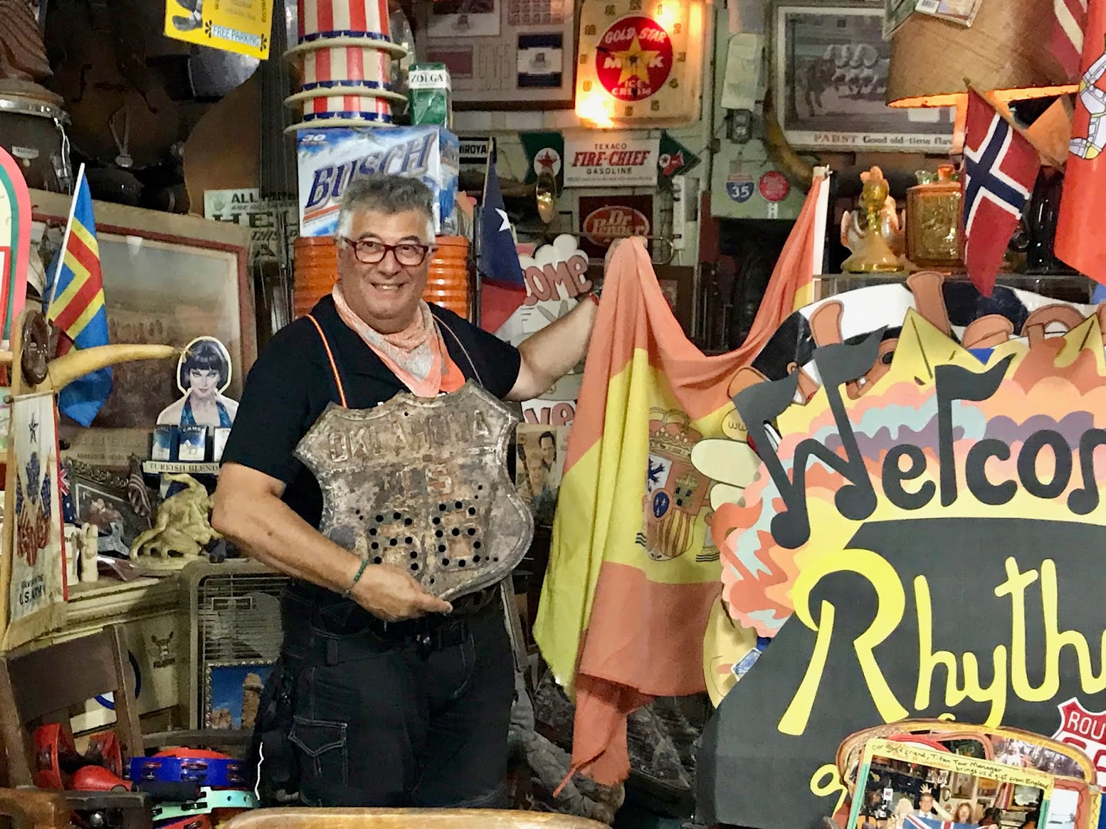 Y en Oklahoma, tenemos al gran showman llamado Harley, un amigo de hace muchos años, incombustible, hippie, bromista, músico…, creo que ya no concebimos la Route 66 sin él.