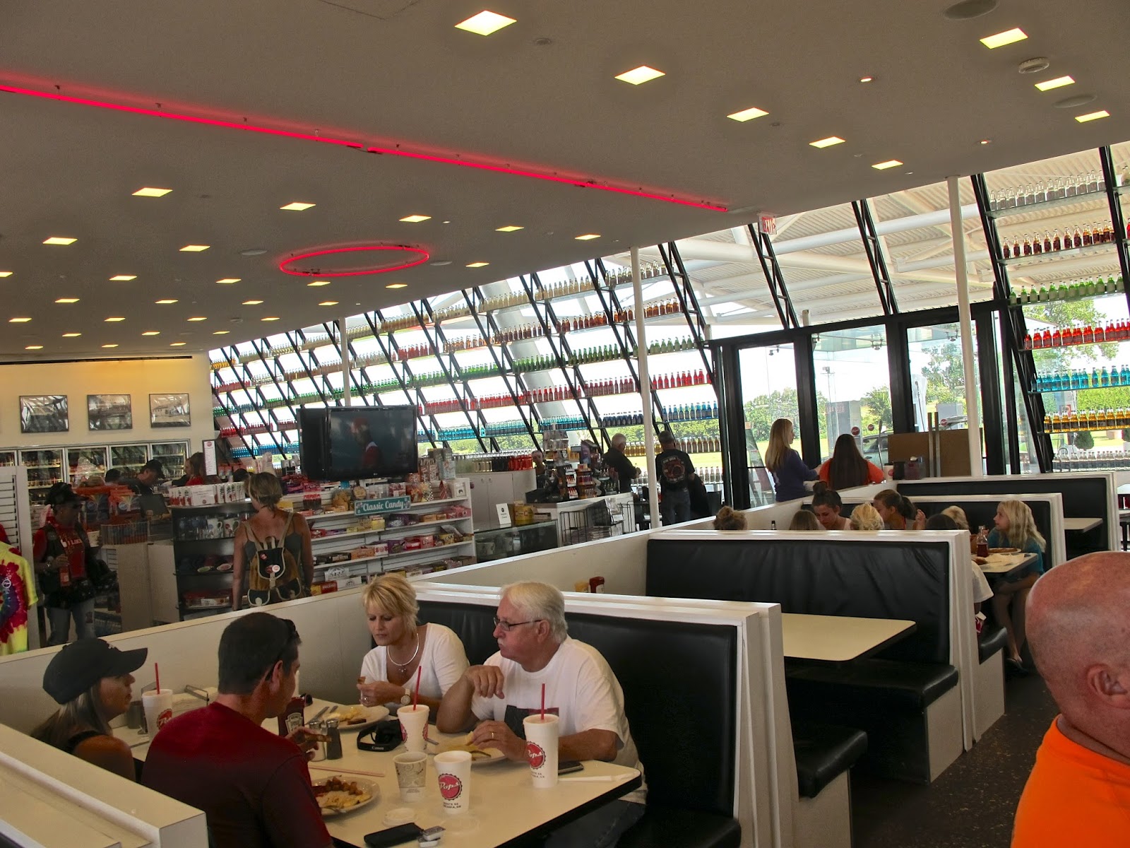 Nuestra primera parada es en Pops Arcadia. Una gasolinera-bar donde miles de botellas de soda decoran y ofrecen una selección que debe ser una de las mas importantes. Pops es otro icono de la ruta que sorprende. Está restaurado y en un estado impecable.