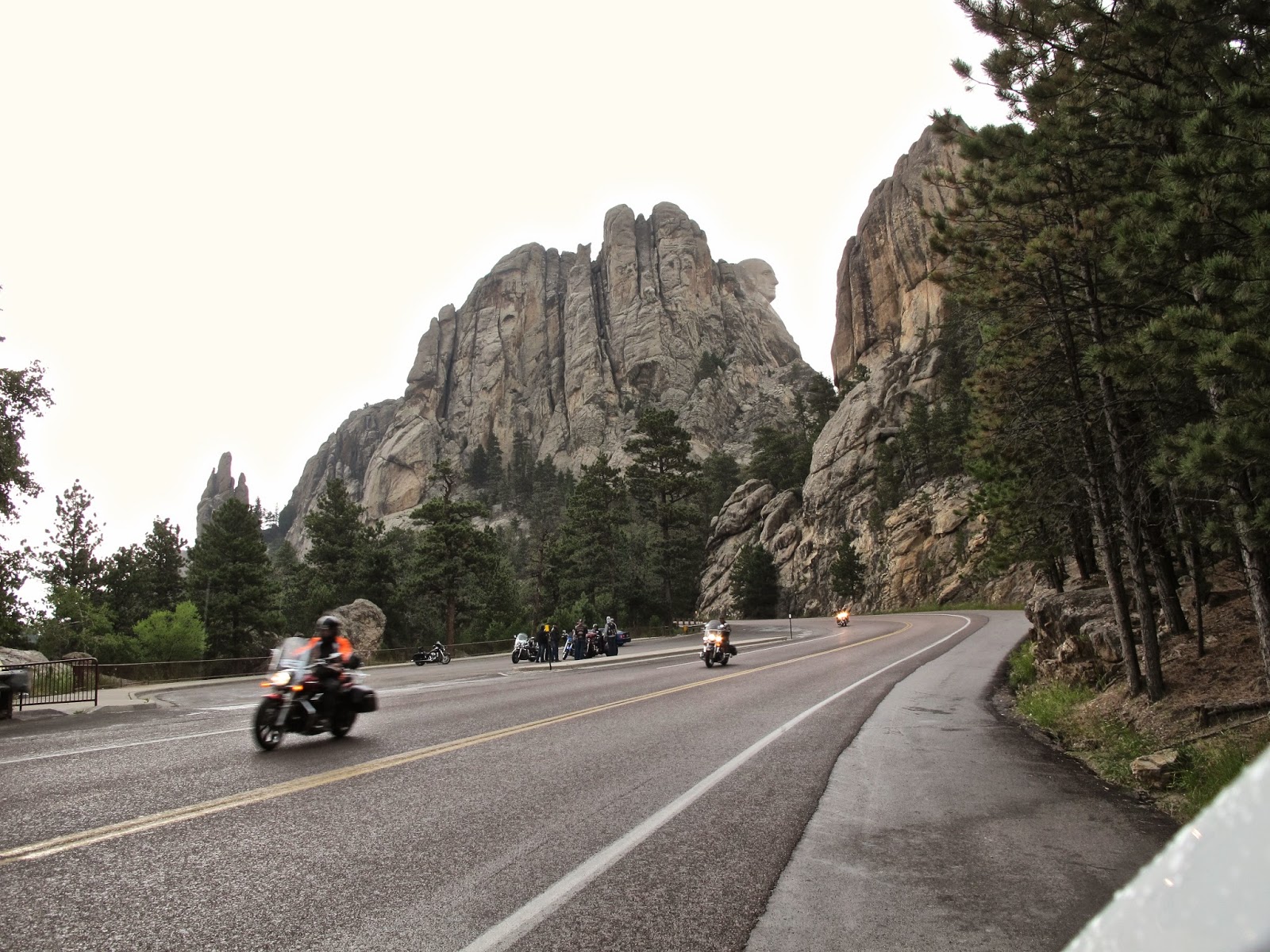 Continuamos ruta, por la 87 norte. Esta es una ruta escénica realmente bonita. Ya hay motos por todas partes, en todas las direcciones. El ambiente del Rally de Sturgis está de una manera cada vez mas evidente a cada milla.