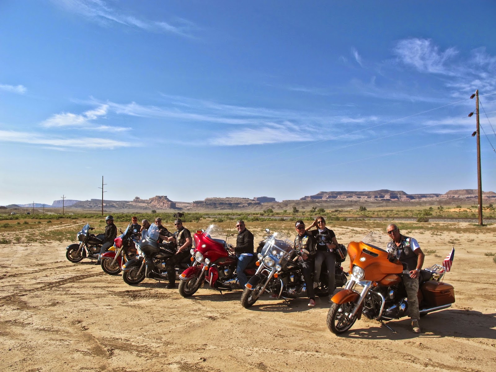 Canyonlands de fondo, con el grupo en sus motos.